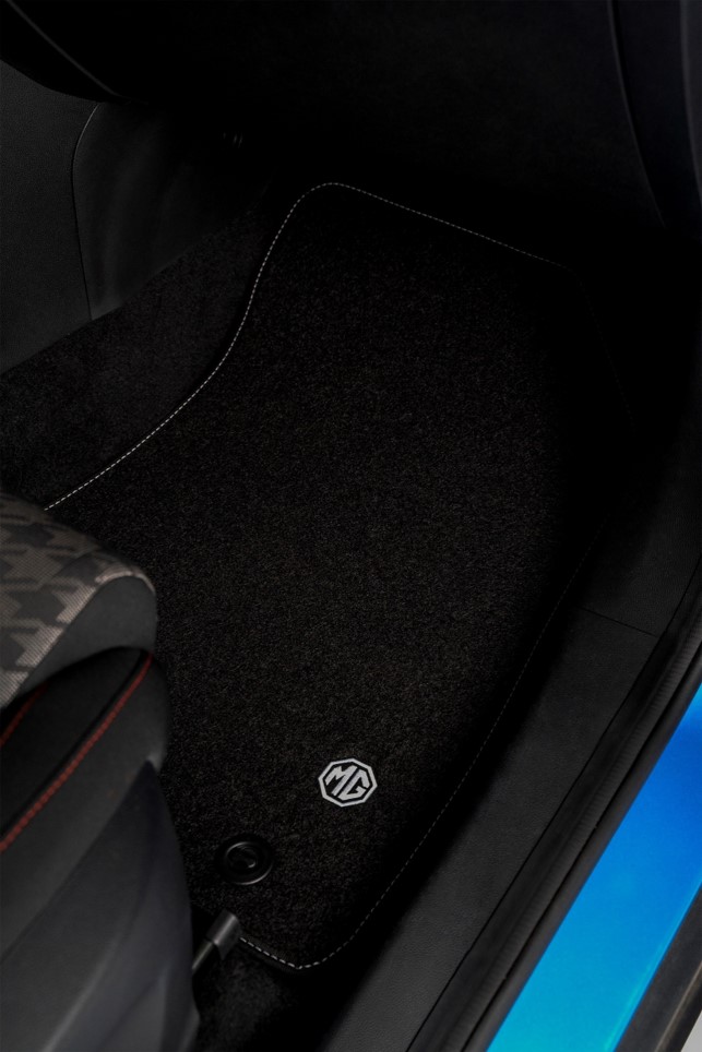 • Διαμορφωμένα, σετ 4 τεμαχίων, με λογότυπο MG, λευκές ραφές και στερεώσεις δαπέδου.